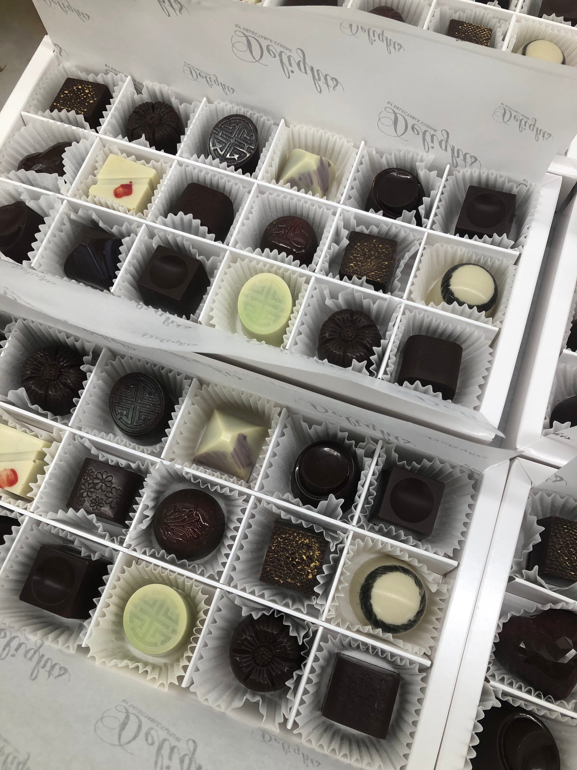 May include various couvertures in the selection, Dark, Milk & White chocolate varieties.