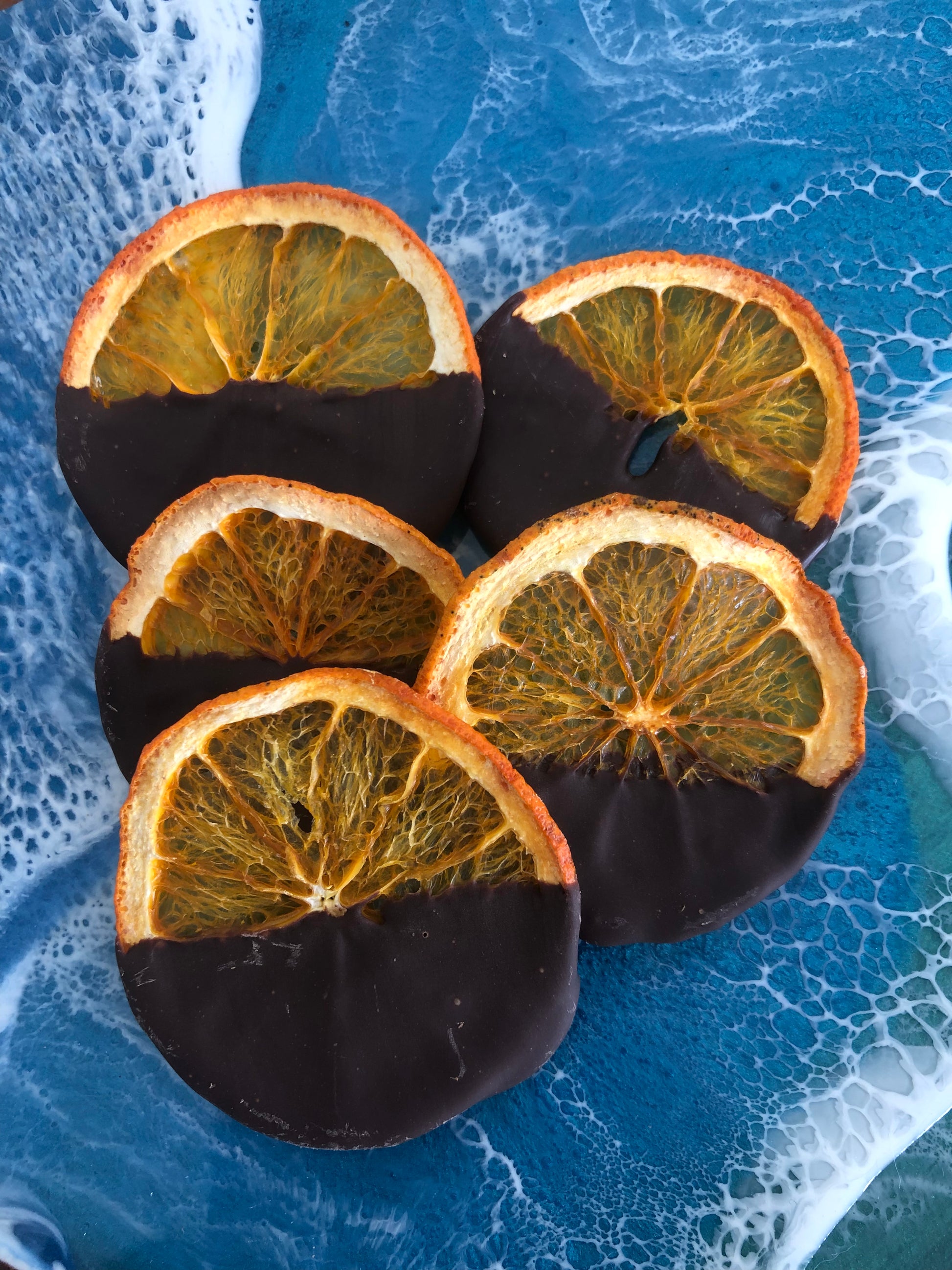 These sun kissed Tangelos are grown in our own orchard in the beautiful Muriwai Valley. Hand picked and processed. They are washed, sliced, dehydrated and finally hand dipped in 54% Belgium dark couverture.